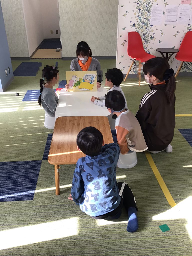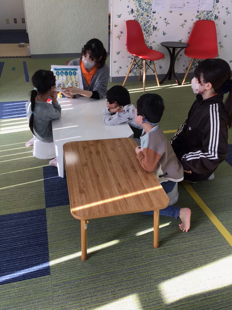 地震についての紙芝居を子ども達の前で読みました!「ヘビさんいるー」と感想を言ってくれる子もいました🐍揺れが一度収まってからすぐに飛び出すと危ないことなど、大事なことを簡単に絵で表されていました!