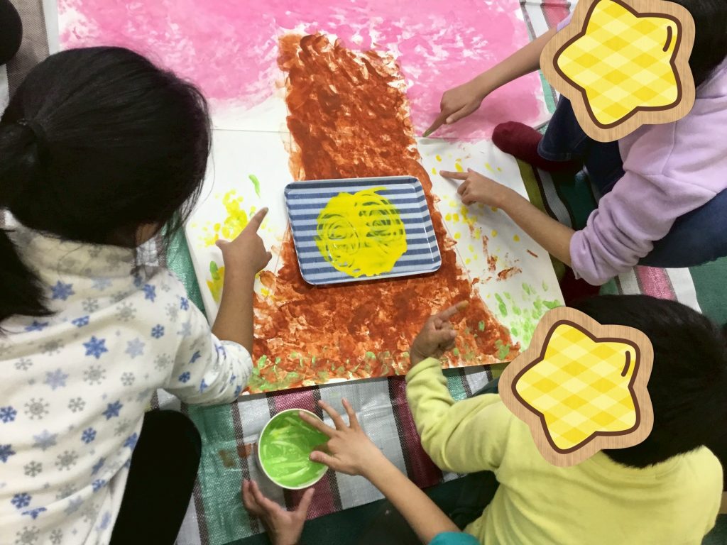 真っ白な紙を目の前に、ワクワクな子どもたち😆