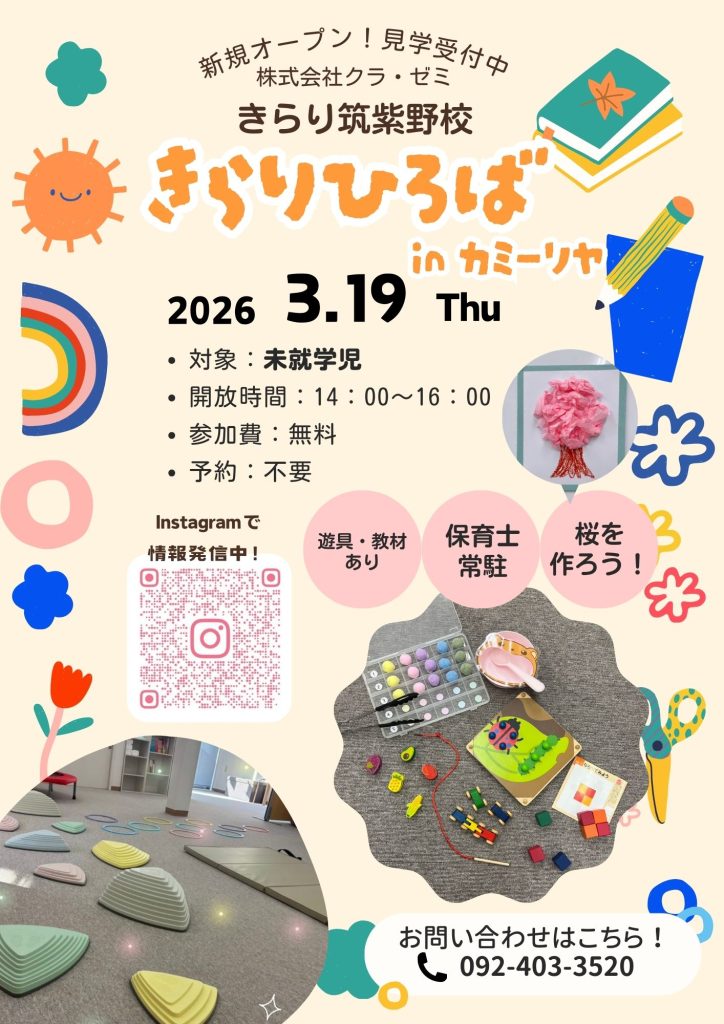 3月19日には、きらり内で行っていたきらりひろばを初めて、公共施設で行います✨