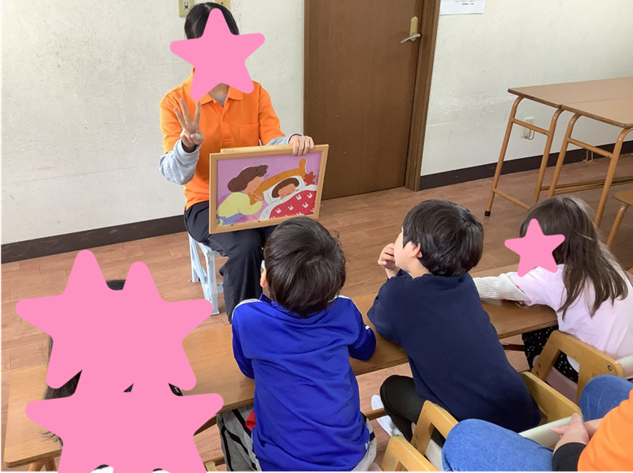 まずは、紙芝居でひなまつりのお話を聞き、そのあとゲームを行いました✨
