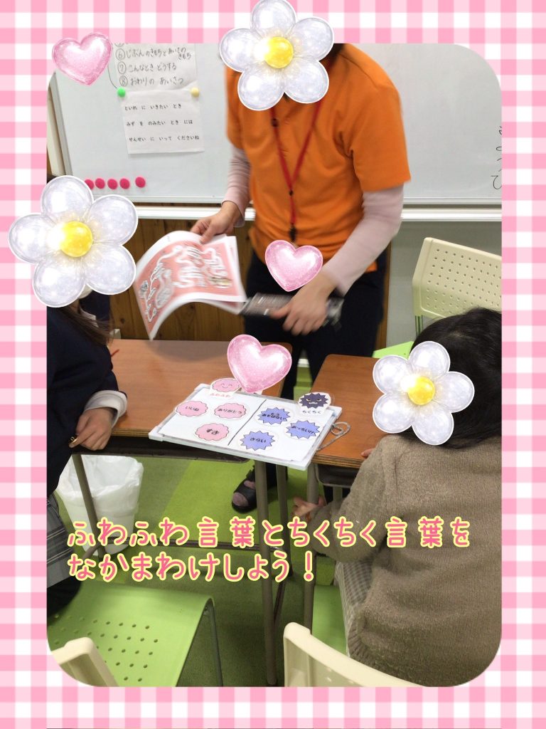 学校生活における様々な場面を想定して具体的な解決策を一緒に考えたり、「ふわふわ言葉」を使った時、「ちくちく言葉」を使った時、それぞれの場面でどんな気持ちになるかを想像する、などの活動をおこないました。