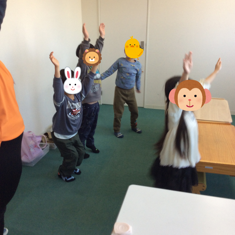 紙芝居を読み終わった後に、のび~る運動をおこないました。