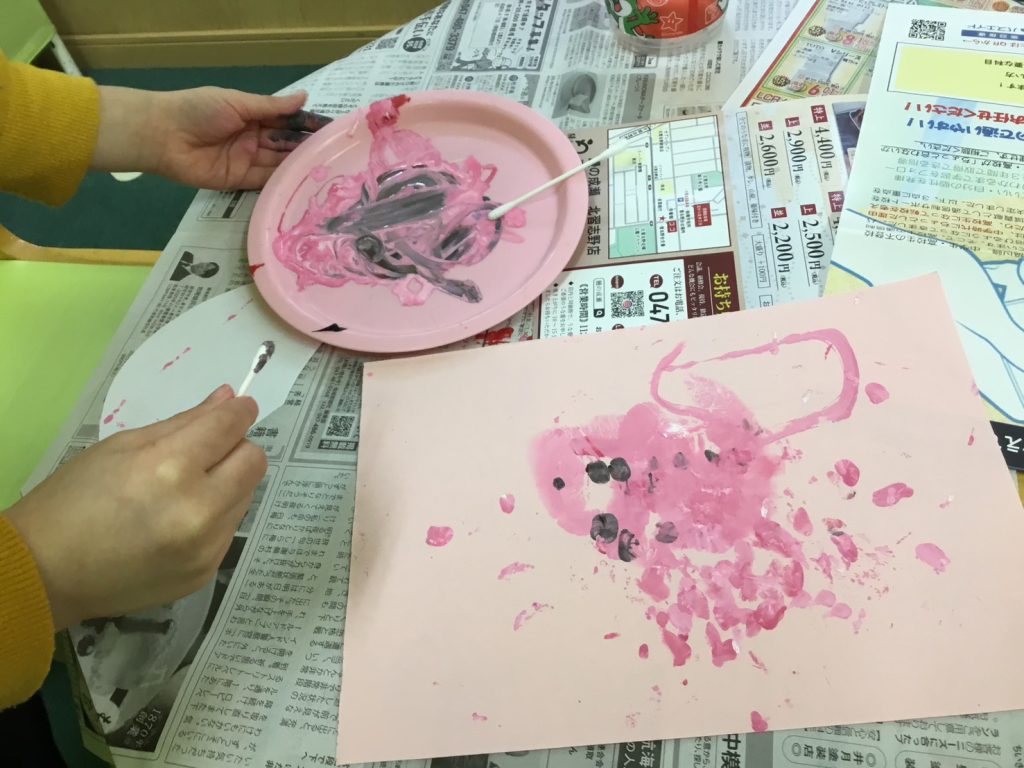 指で塗ったり綿棒でポンポンしたり…🎨
