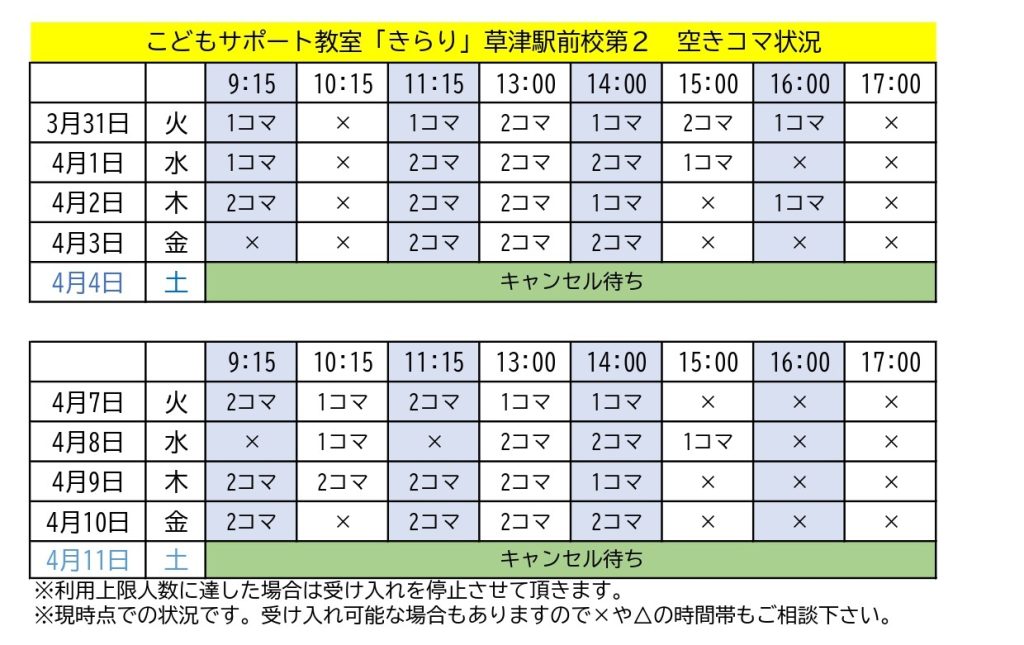 【3月31日(火)~4月11日(土)】の空きコマ情報をお知らせします✨