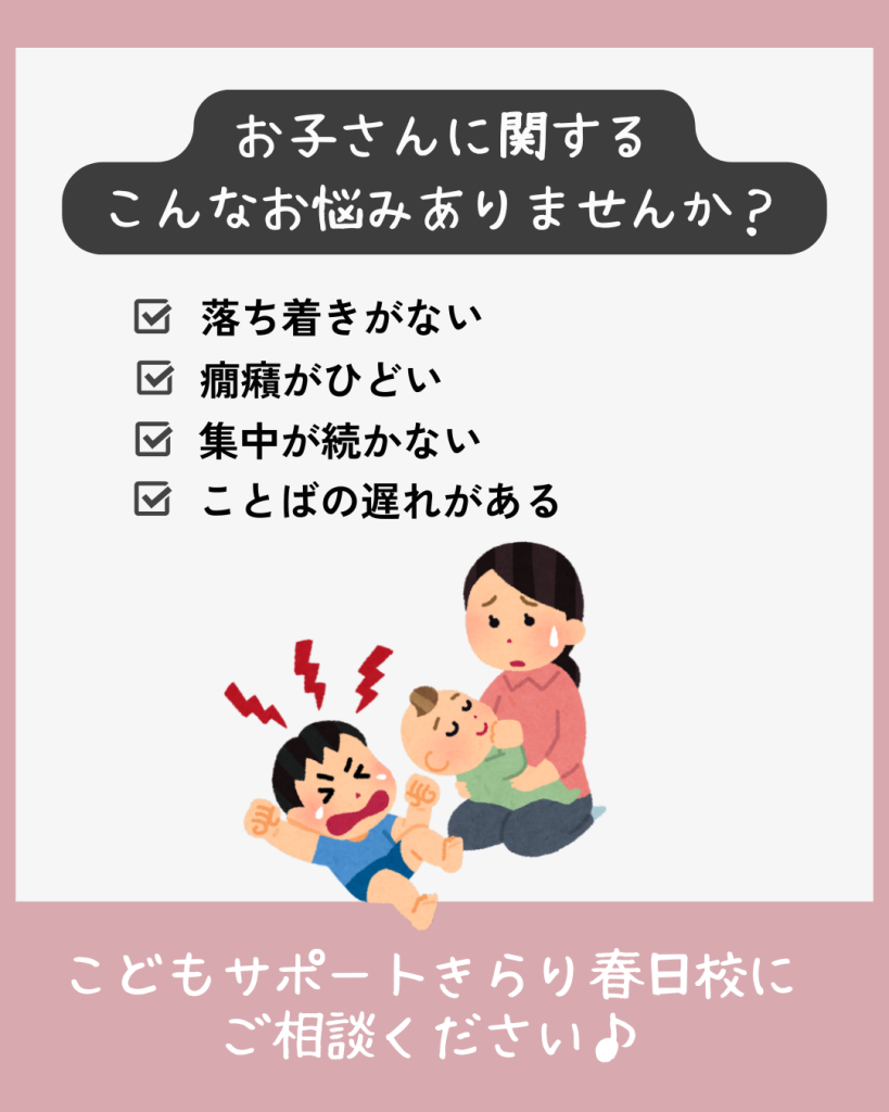こどもサポート教室きらり春日校では、放課後等デイサービスの利用が多いため、「小学生以上の事業所」というイメージを持たれることがありますが、未就学のお子さんを対象とした児童発達支援も行っています。