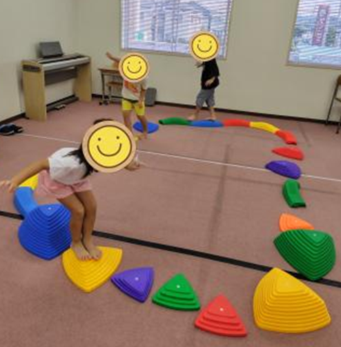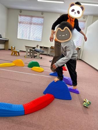 支援室いっぱいにブロックやバランスストーンで道を作って渡ります!