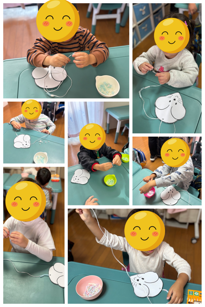 Hoje realizamos uma atividade divertida para trabalhar a coordenação motora fina. As crianças receberam um ratinho feito de papel e precisavam colocar canudinhos no rabo do rato.
