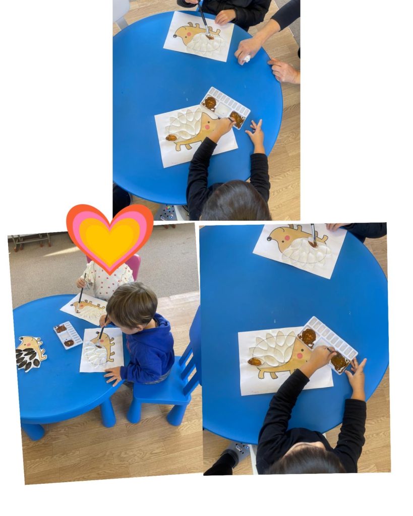 Porco Espinho 更新日 2025年12月13日 EAC Fukuroi Atividade de pintura com guache, trabalha a coordenacao motora fina, criatividade, cores e texturas. ATIVIDADE 前へ